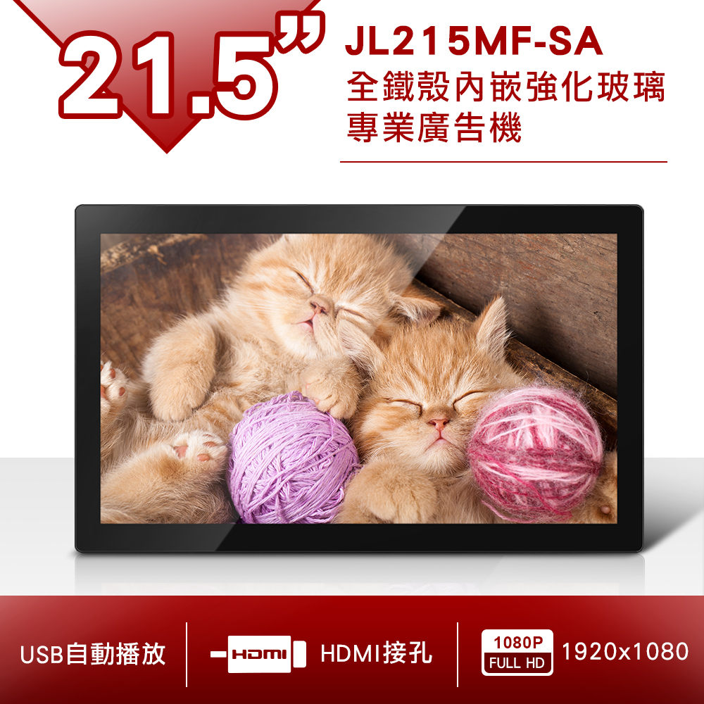 詳細規格|全鐵殼內嵌強化玻璃廣告機-JL215MF-SA